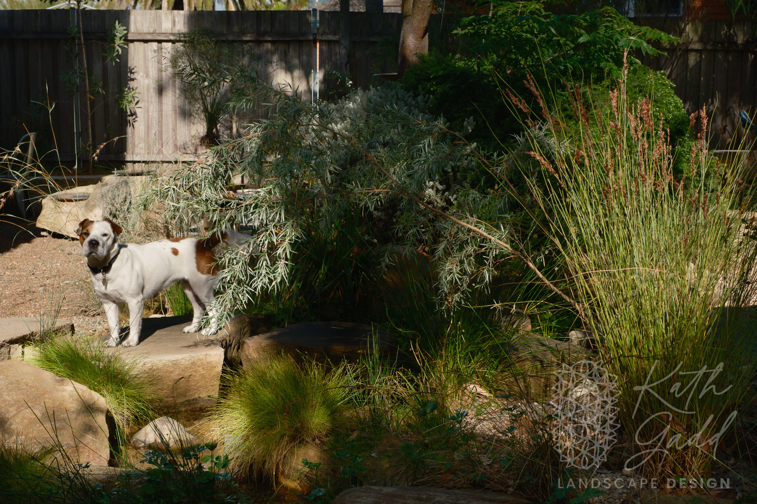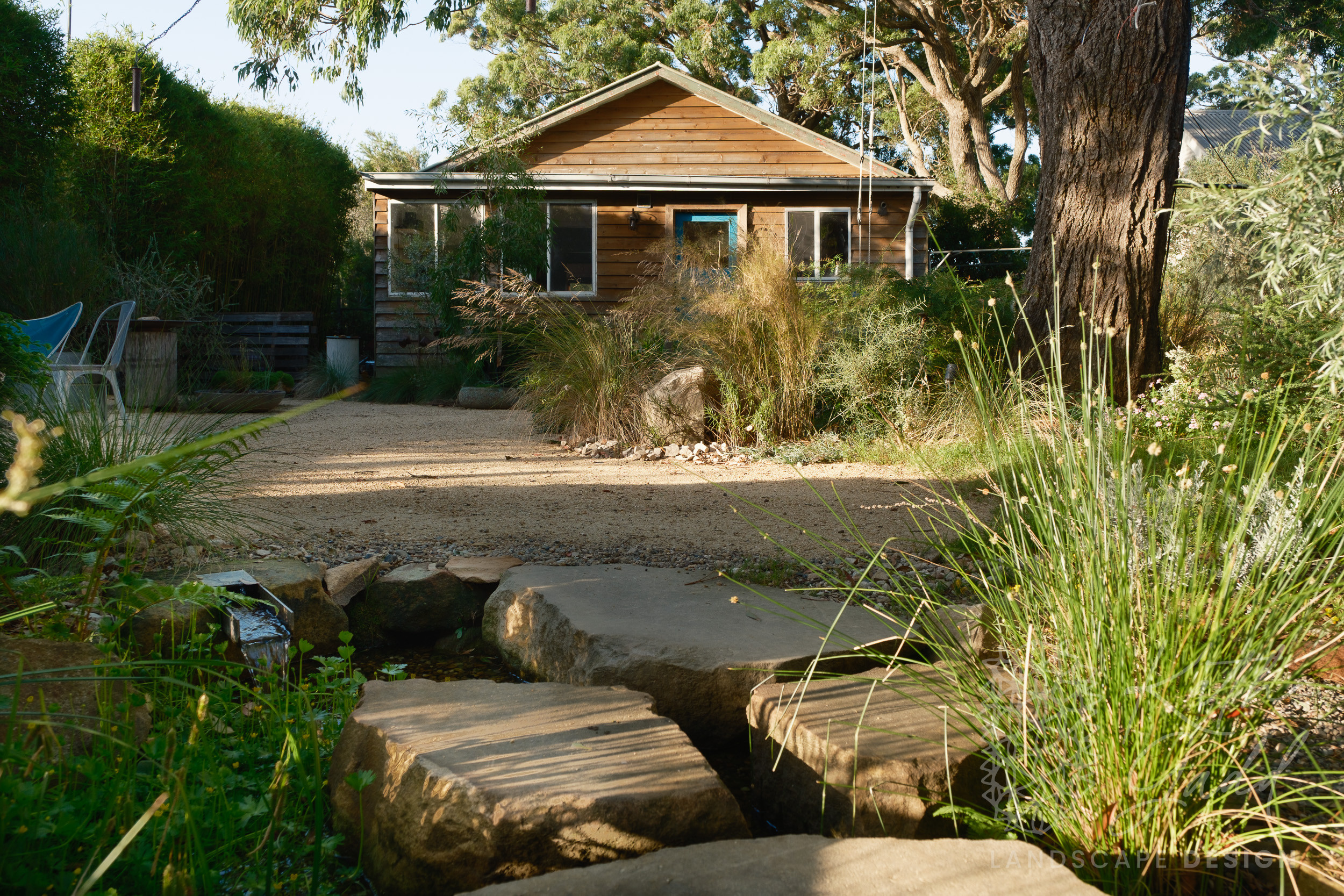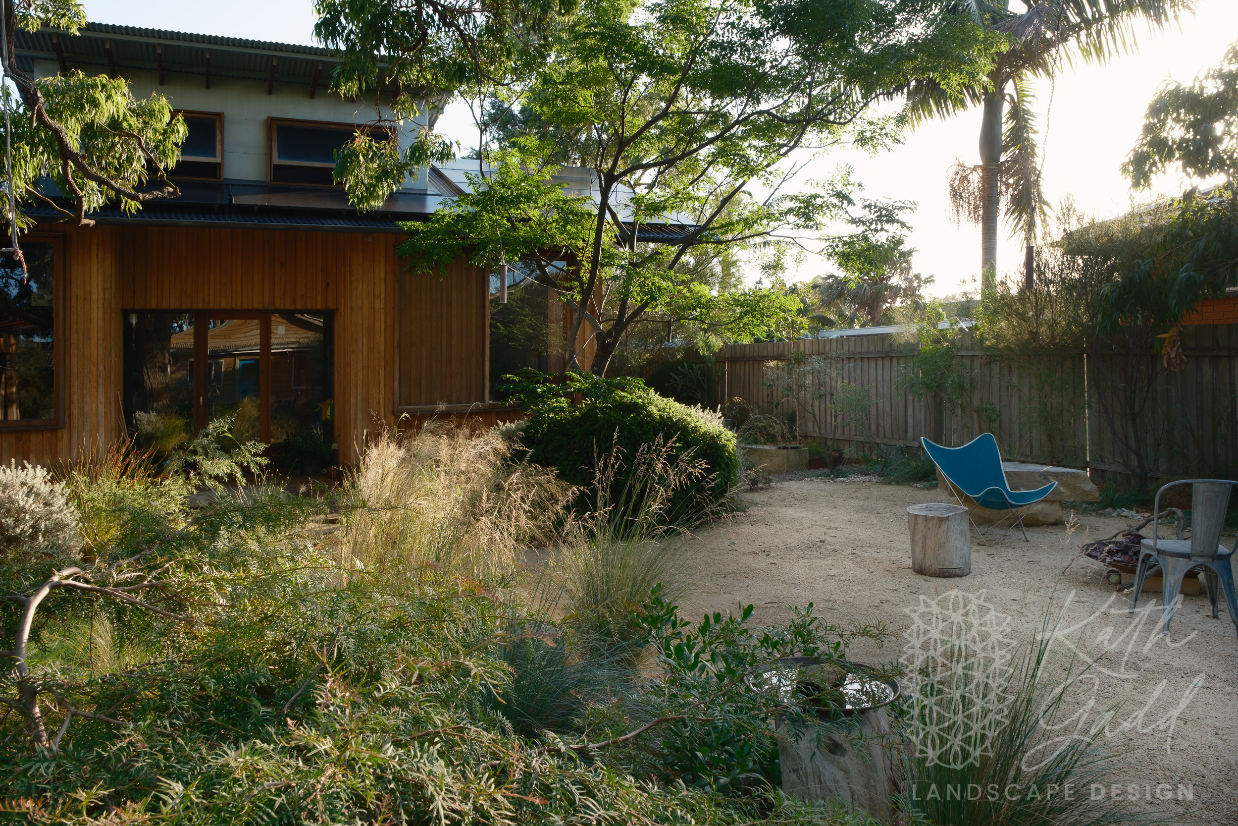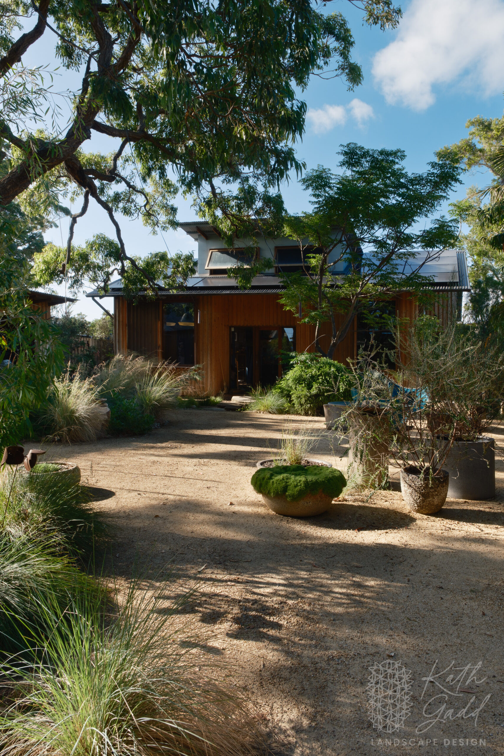 This is my garden, my place of experimentation and play. I live in a coastal suburb of Northern Illawarra, under the canopy of several indigenous Eucalyptus paniculata. I have clay soils, plenty of coastal winds and neighbours tight up against all boundaries. I like to pretend I live in the bush. My partner designed and built the rear house as a garden house, with large sliding windows framing the views. We live in the garden between the two houses in a somewhat courtyard archetype. The garden has evolved over many years now with the frog pond being the latest edition.