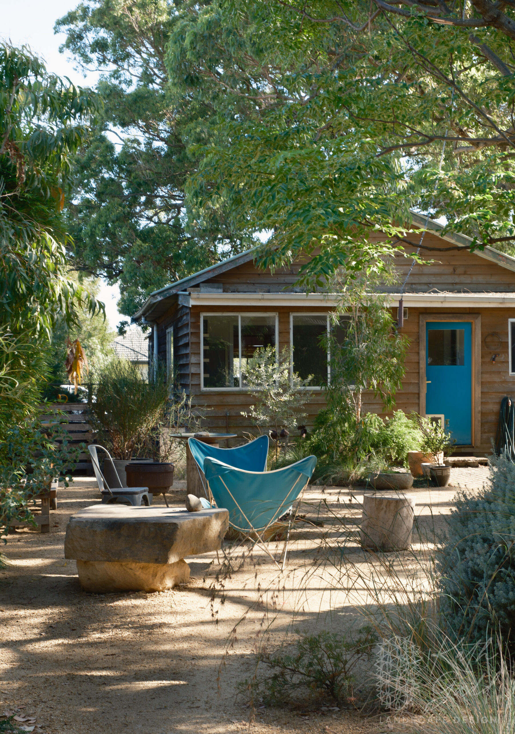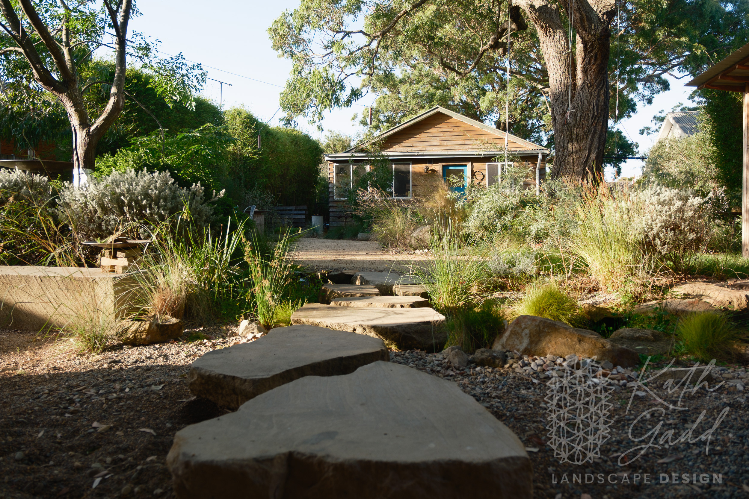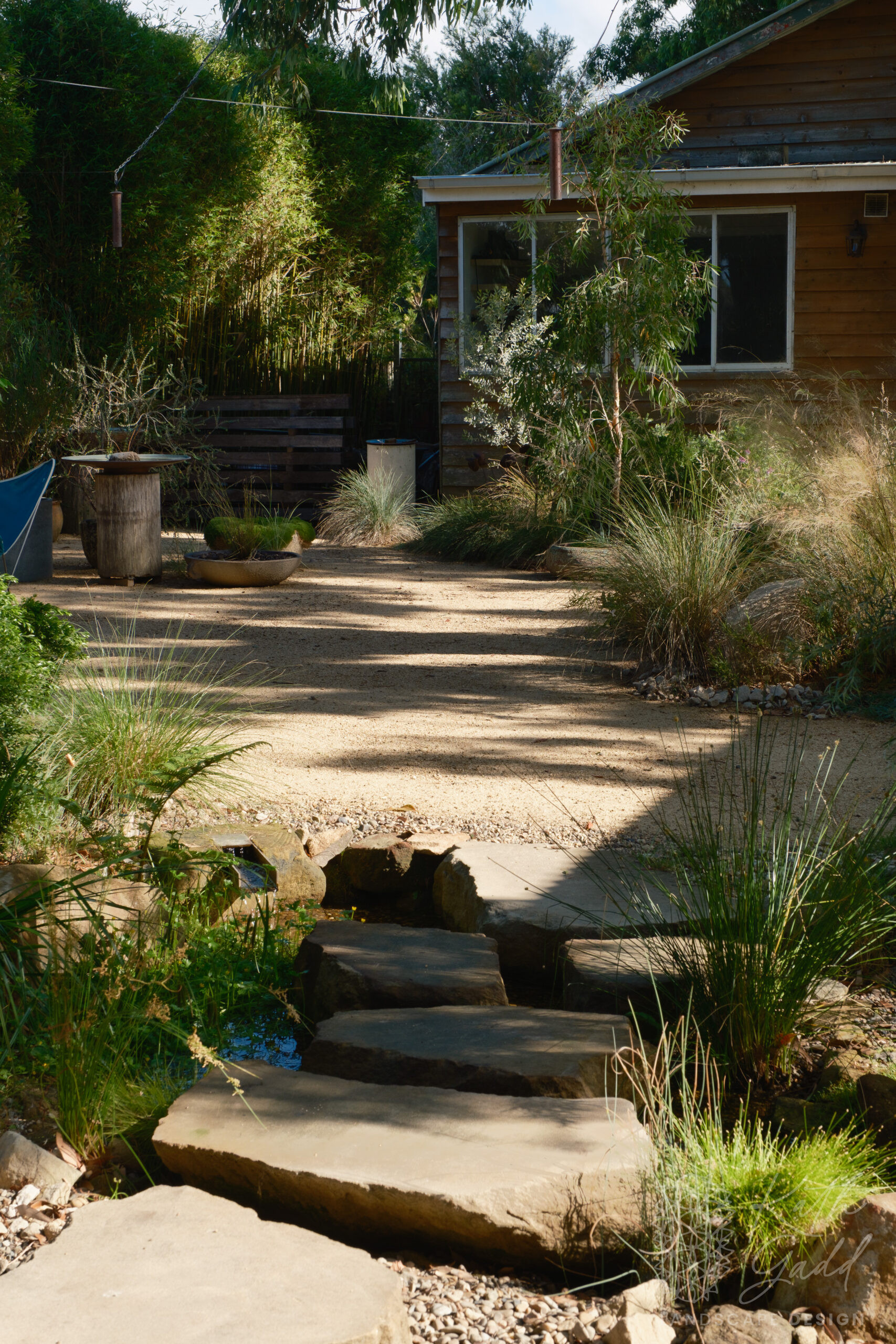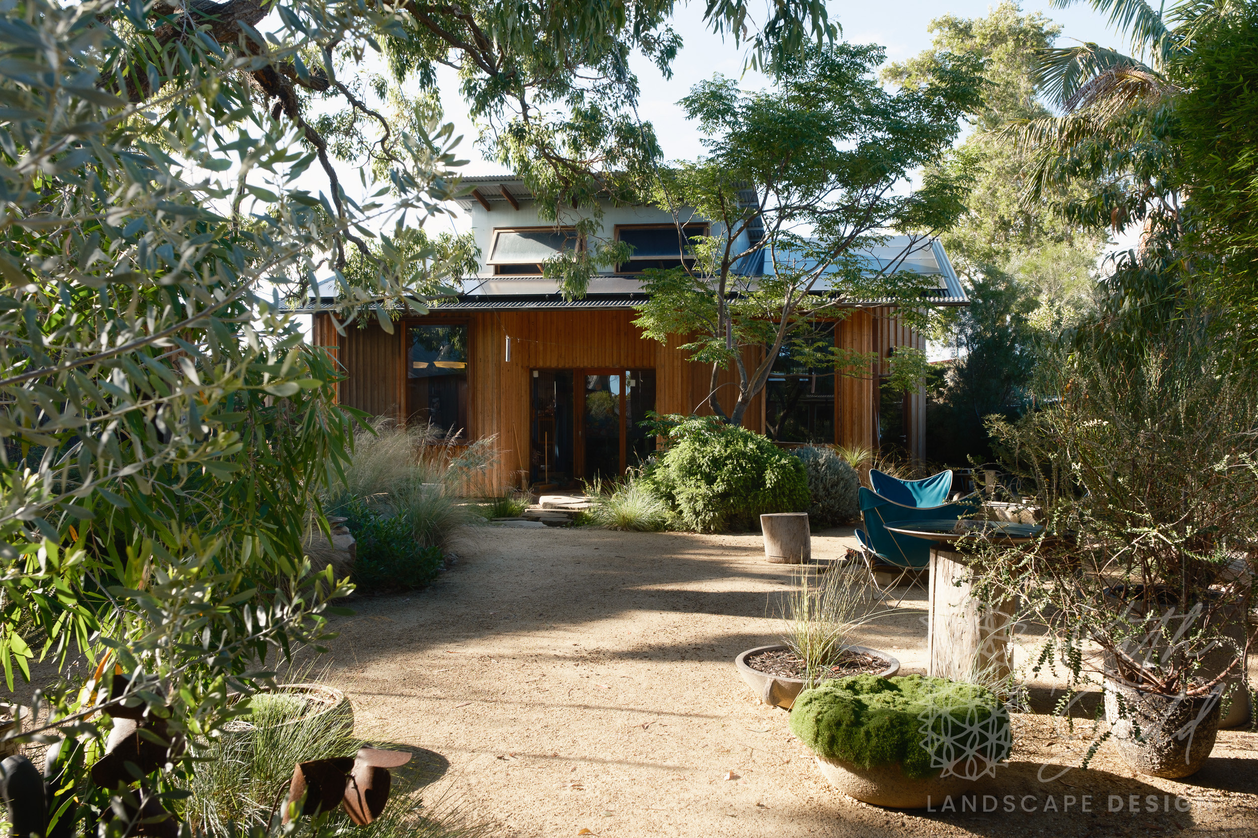 This is my garden, my place of experimentation and play. I live in a coastal suburb of Northern Illawarra, under the canopy of several indigenous Eucalyptus paniculata. I have clay soils, plenty of coastal winds and neighbours tight up against all boundaries. I like to pretend I live in the bush. My partner designed and built the rear house as a garden house, with large sliding windows framing the views. We live in the garden between the two houses in a somewhat courtyard archetype. The garden has evolved over many years now with the frog pond being the latest edition.